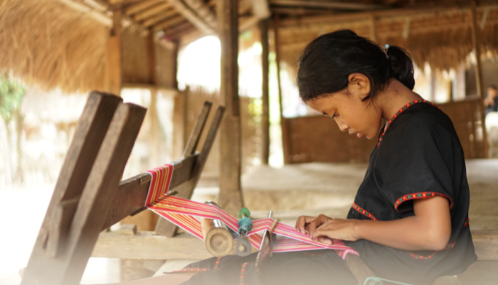 Where you see a tradition of weaving in well cared. They weave gold and silver thread to be traditional Songket and Ikat cloth with very simple looms.